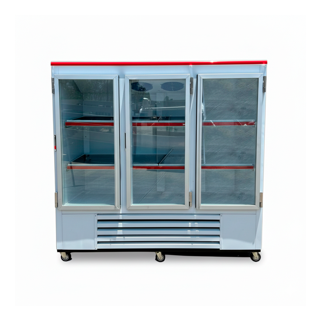 Equipo de refrigeración industrial de 2 metros de longitud, diseñado para almacenamiento amplio y organizado. Incorpora tres puertas independientes, que optimizan el acceso y reducen la pérdida de frío durante la operación diaria.