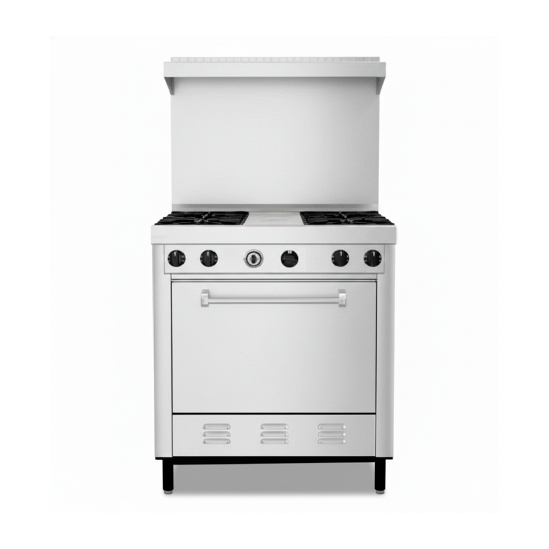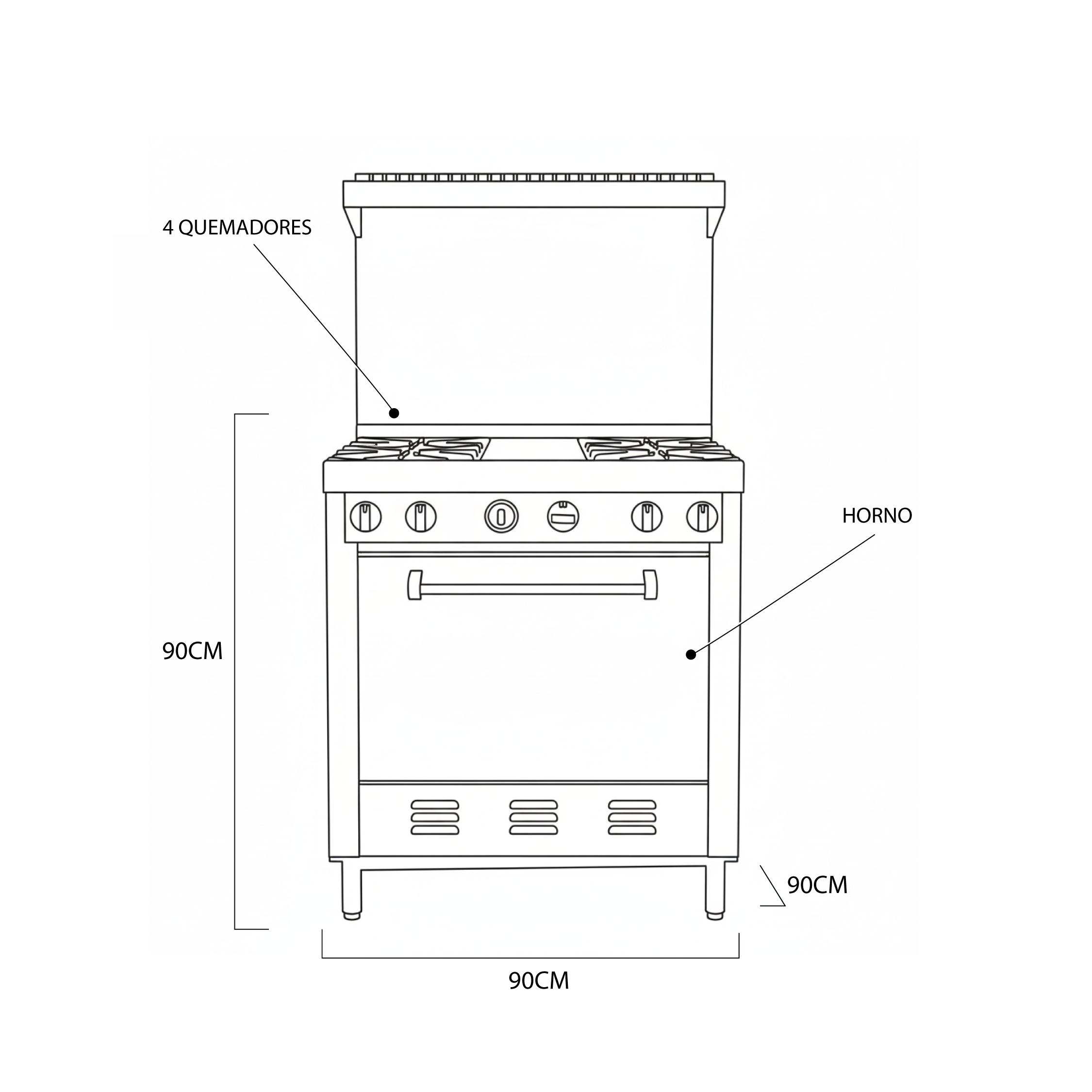 Equipo industrial diseñado para alto rendimiento en cocinas profesionales. Fabricada en acero inoxidable, incorpora cuatro quemadores de cocción eficiente y horno amplio integrado, ideal para hornear, asar y gratinar con precisión. Estructura robusta, fácil limpieza y desempeño confiable para hoteles, restaurantes y comedores institucionales que requieren capacidad y durabilidad en cada jornada.