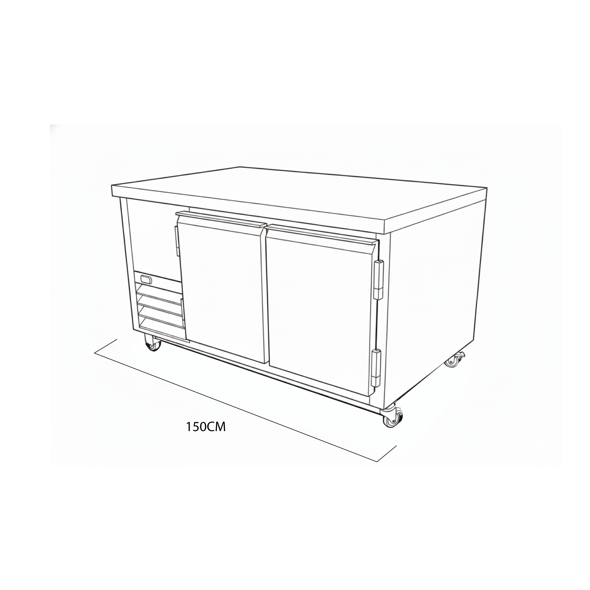 Mesa fría de 150 cm de frente, diseñada para preparación y conservación en un solo equipo. Incorpora sobre sólido de trabajo, ideal para armado, mise en place y manipulación de alimentos, garantizando superficie firme, higiénica y de fácil limpieza.
